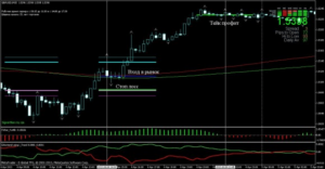На 30 мин, смотрим куда напрвлены, относительно горизонтали, 21EMA, 50SMA и 200SMA, именно в такой последовательности. Если вверх, предпочтительны покупки, вниз — продажи. Определившись с направлением краткосрочного тренда переключаемся на тф 5 мин, для поиска точки входа.