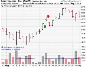 Если цена открытия превышает вчерашний максимум, пересмотрите 1-минутный график после 10:30 и установите стоп-ордер по длинной позиции (на покупку) на два тика выше максимума, достигнутого в первый час торговли. (Примечание: “тик” определяется как разница между ценами на покупку и продажу и, как правило, составляет от 1/8 до 1/4 пункта, в зависимости от акции).