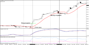Итак, сигнал на покупку по данной торговой стратегии формируется при следующих условиях: