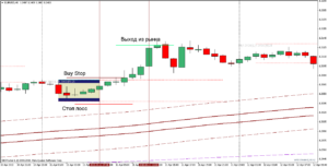 Если после сигнала на покупку цена прошла большое количество пунктов без откатной свечи, тогда не рекомендуется выставлять отложенный ордер, следовательно, необходимо дождаться следующего сигнала на покупку.