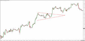 Хотя этот треугольник считается нейтральным, поскольку не имеет своего ориентира для последующего направления. Но при сильном трендовом движении он вероятнее всего будет прорван в сторону начального тренда.